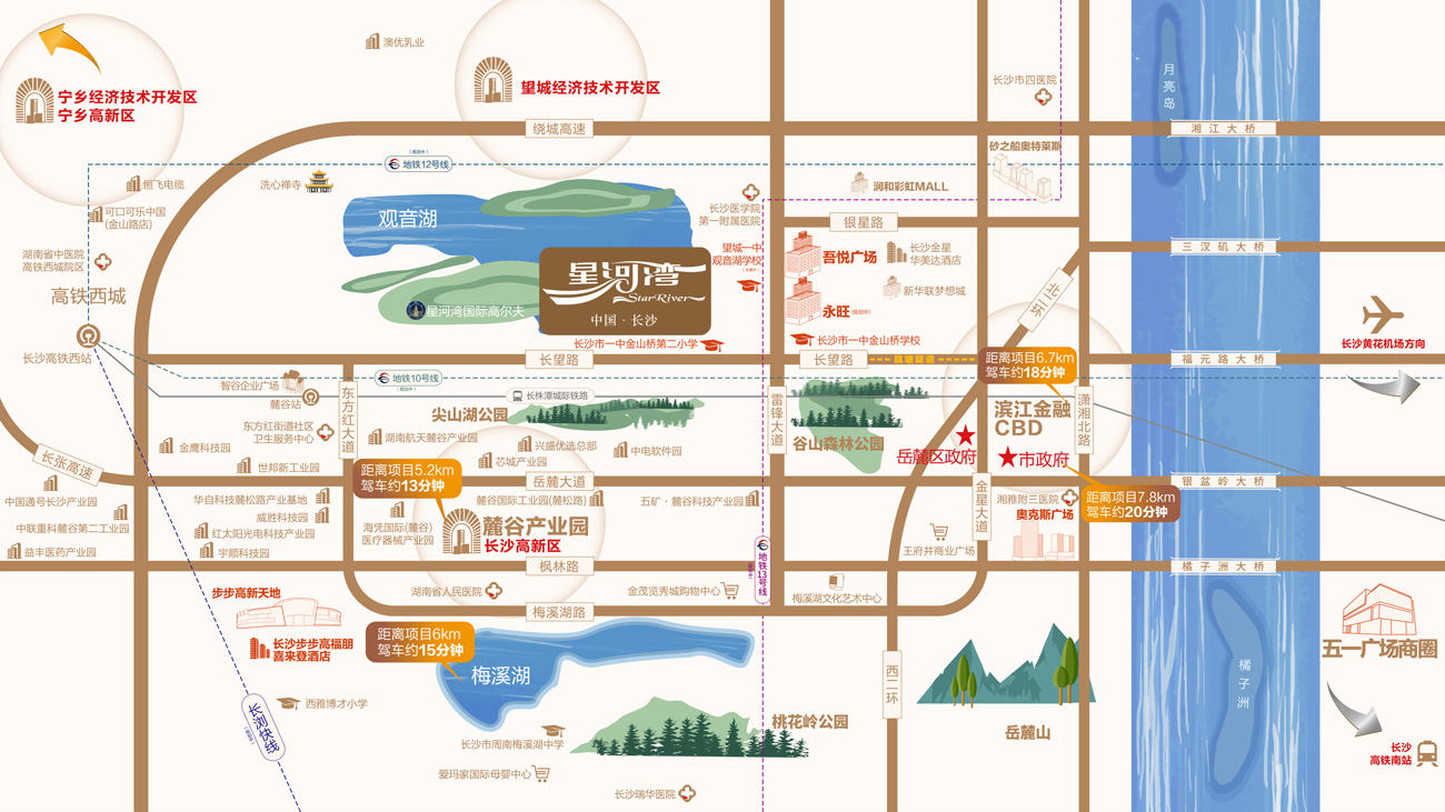 坐拥湘江新区中心地段,资源尽享。长沙市府、滨江CBD、麓谷、高铁西环绕,众星拱月发展势头不可阻挡。